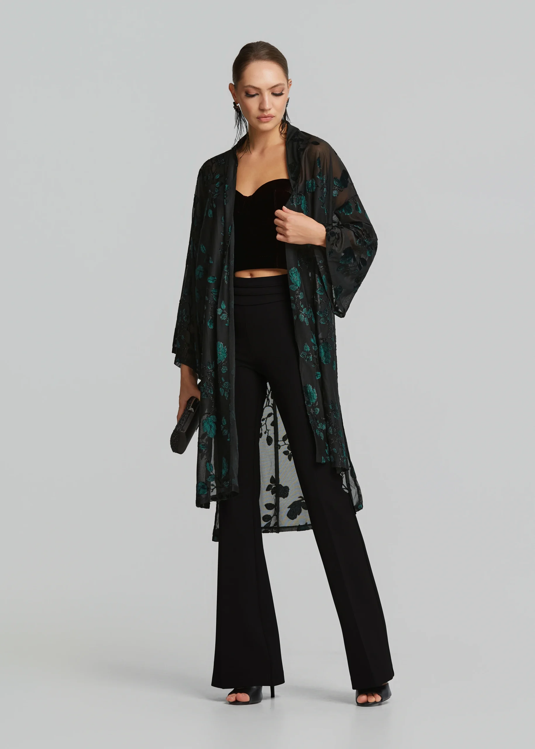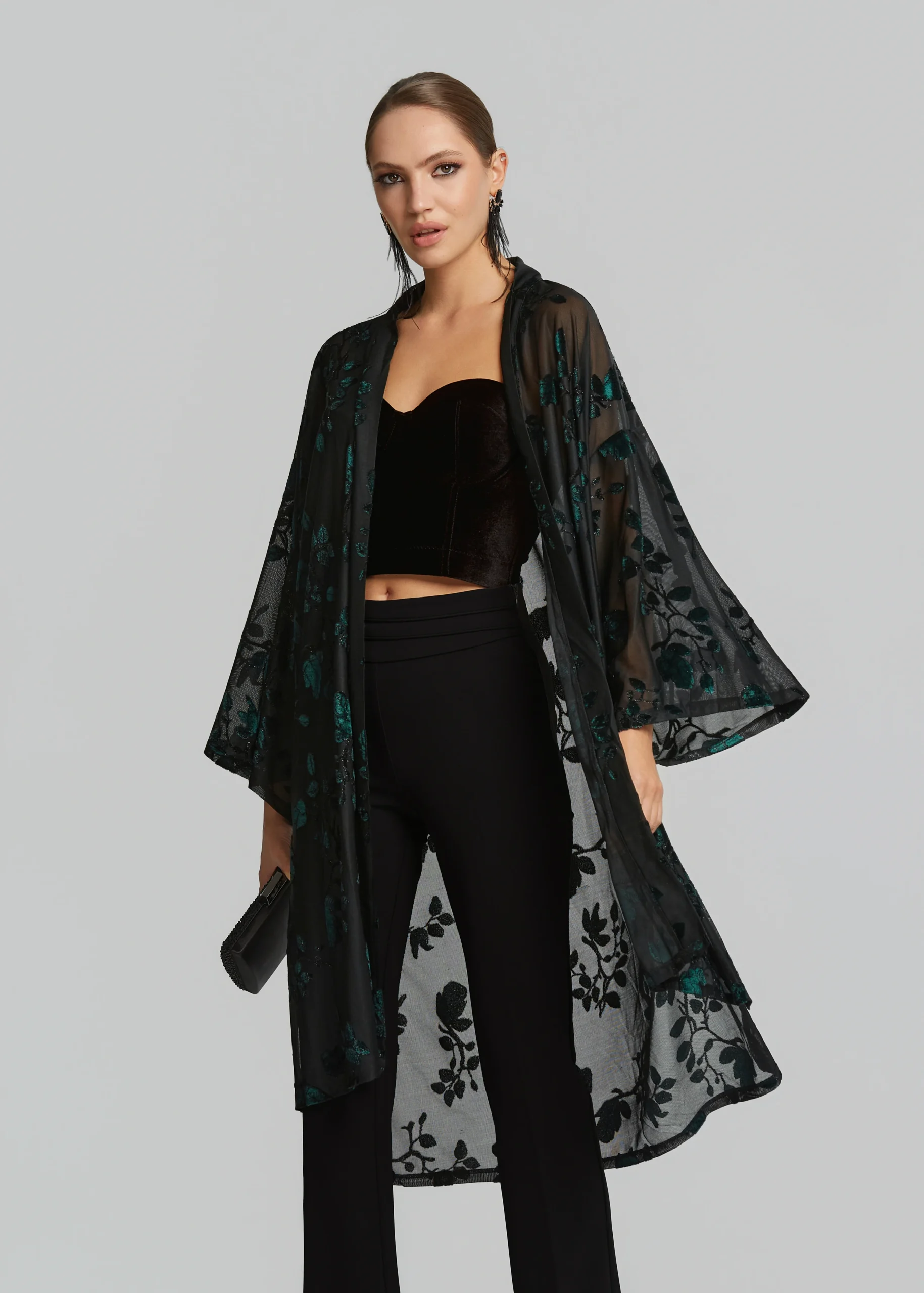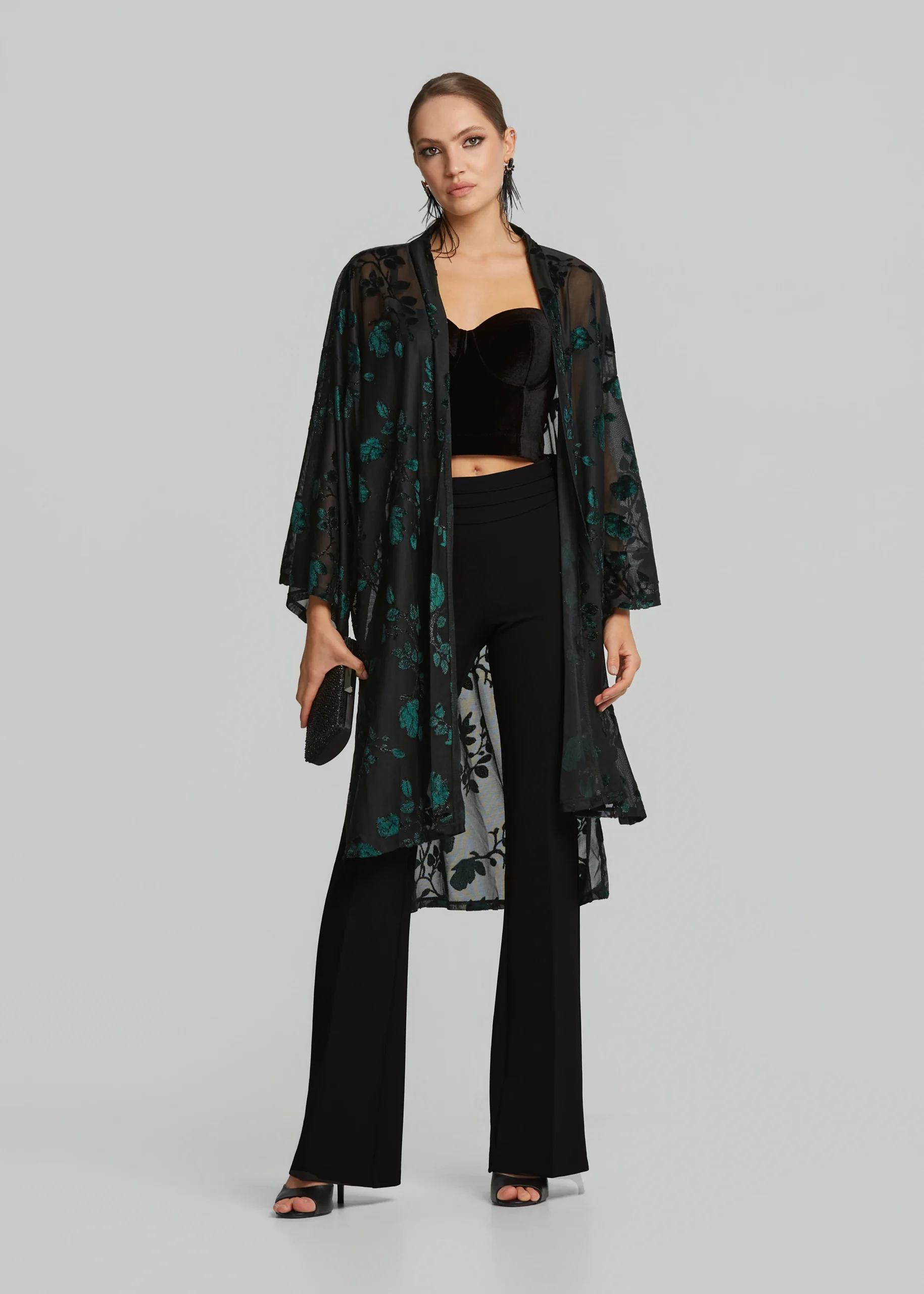- Ζακέτα μαντό σε devore ύφασμα, άνετη εφαρμογή