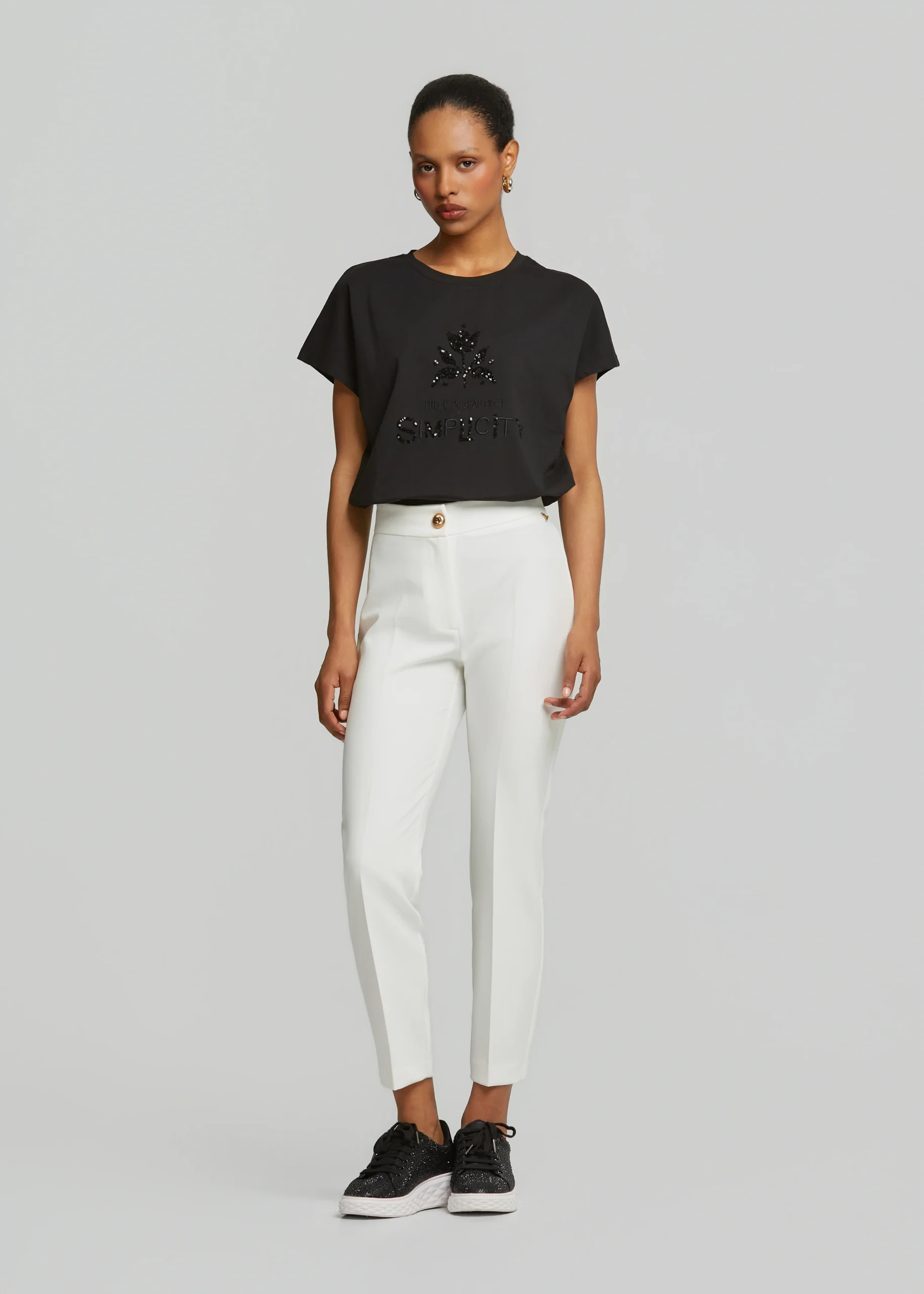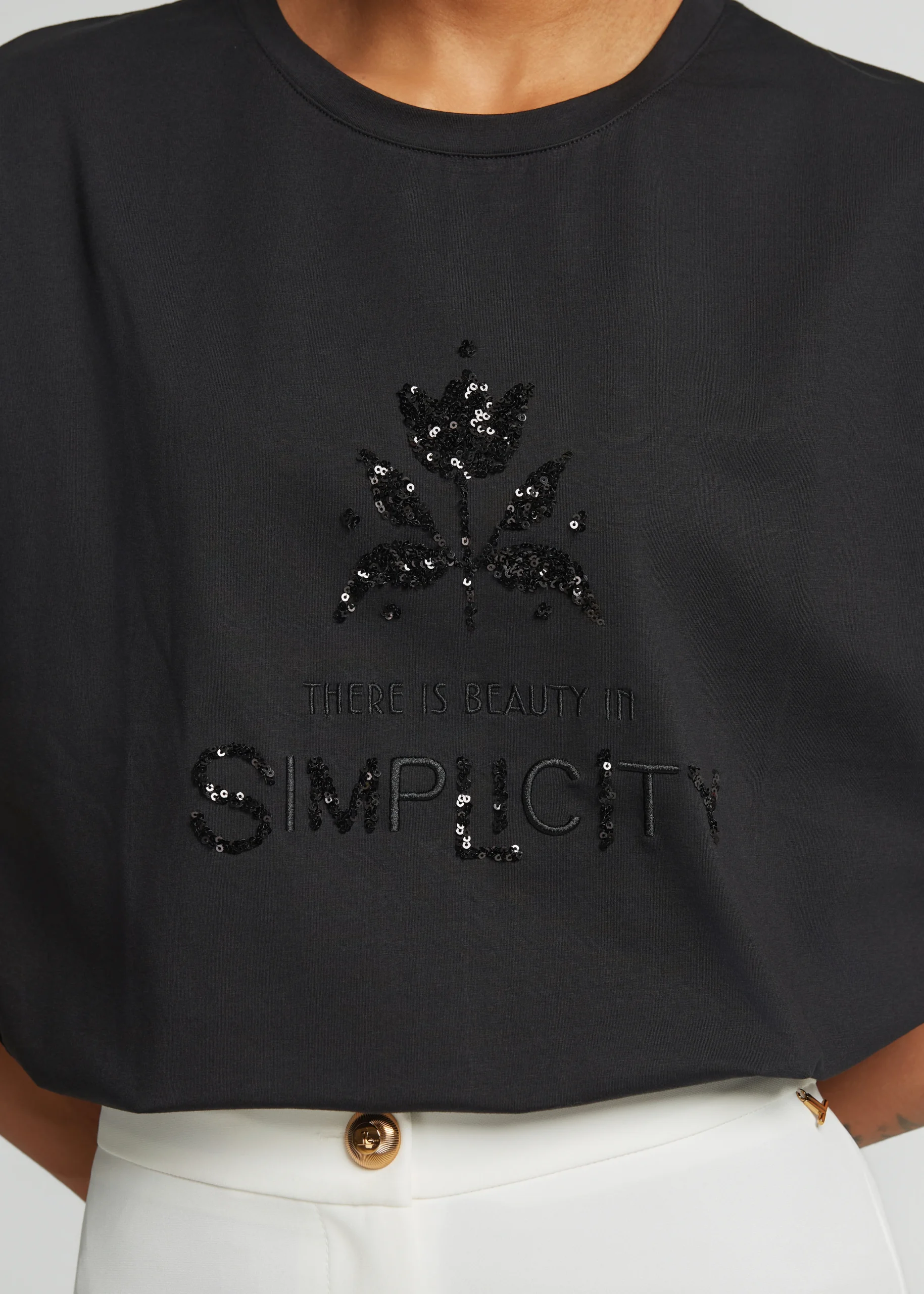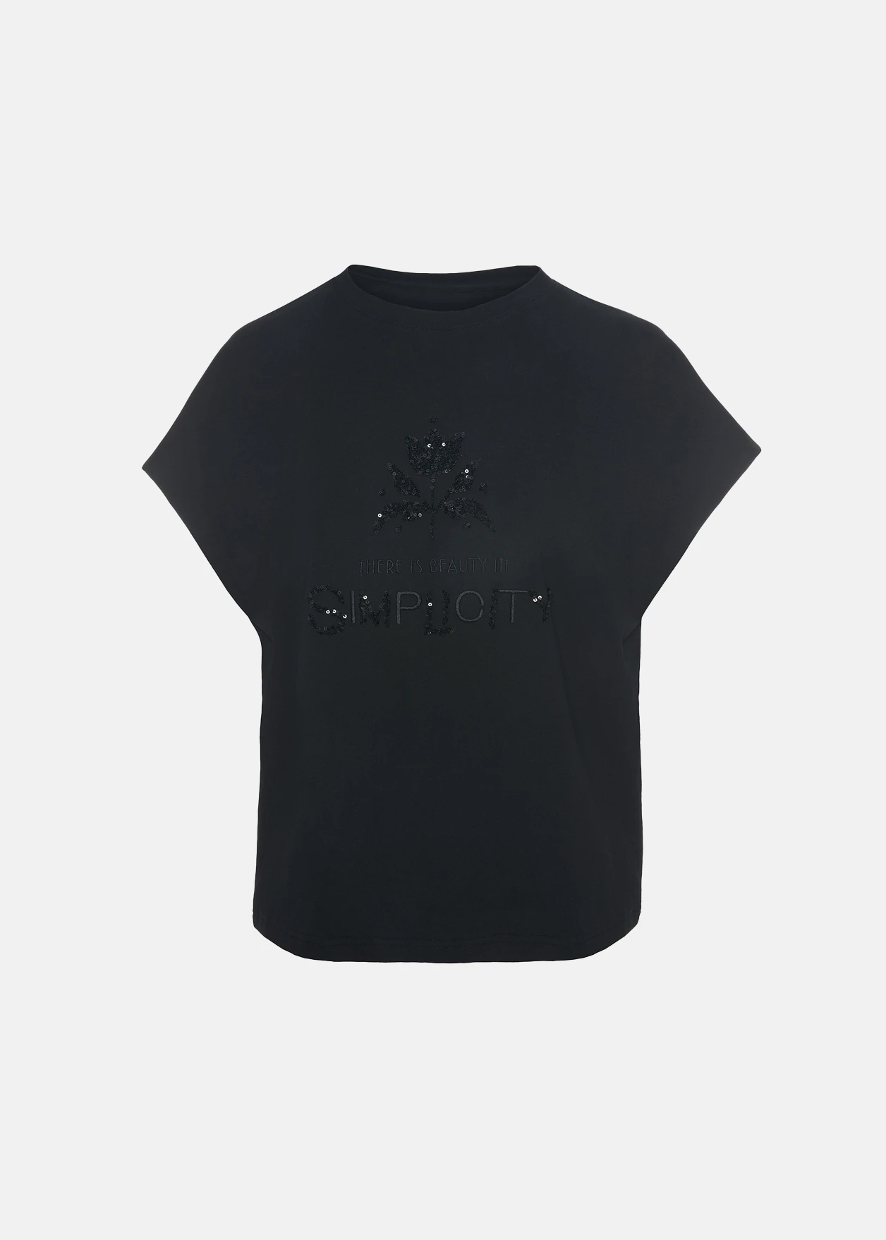 • Blouse with embroidered print and sequins, comfortable sleeve, regular fit