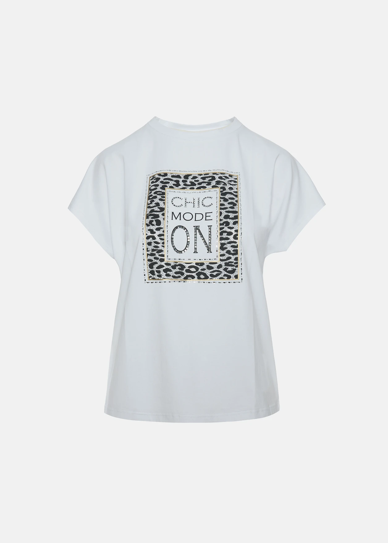 - Blouse with animal print and rhinestones, regular fit