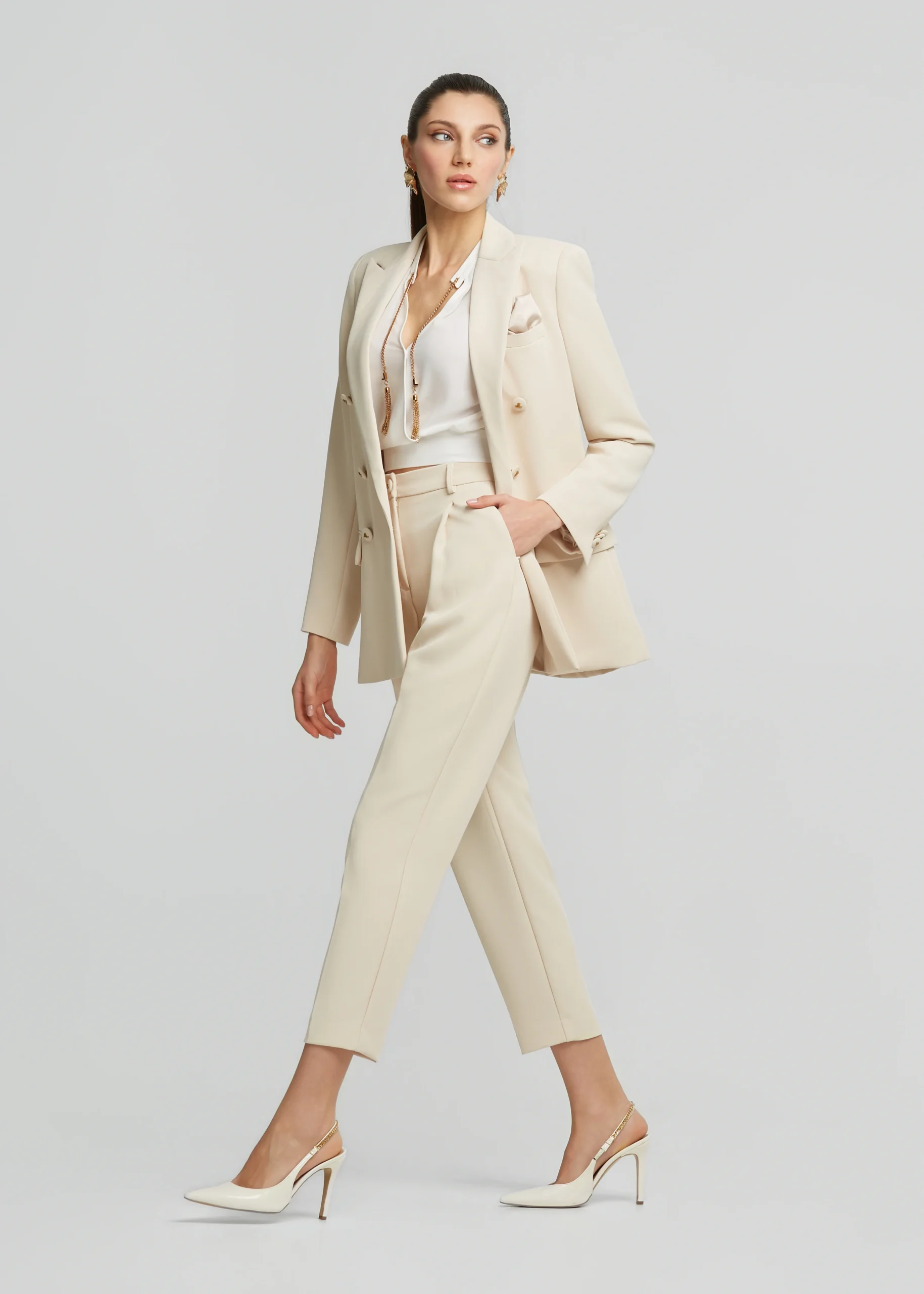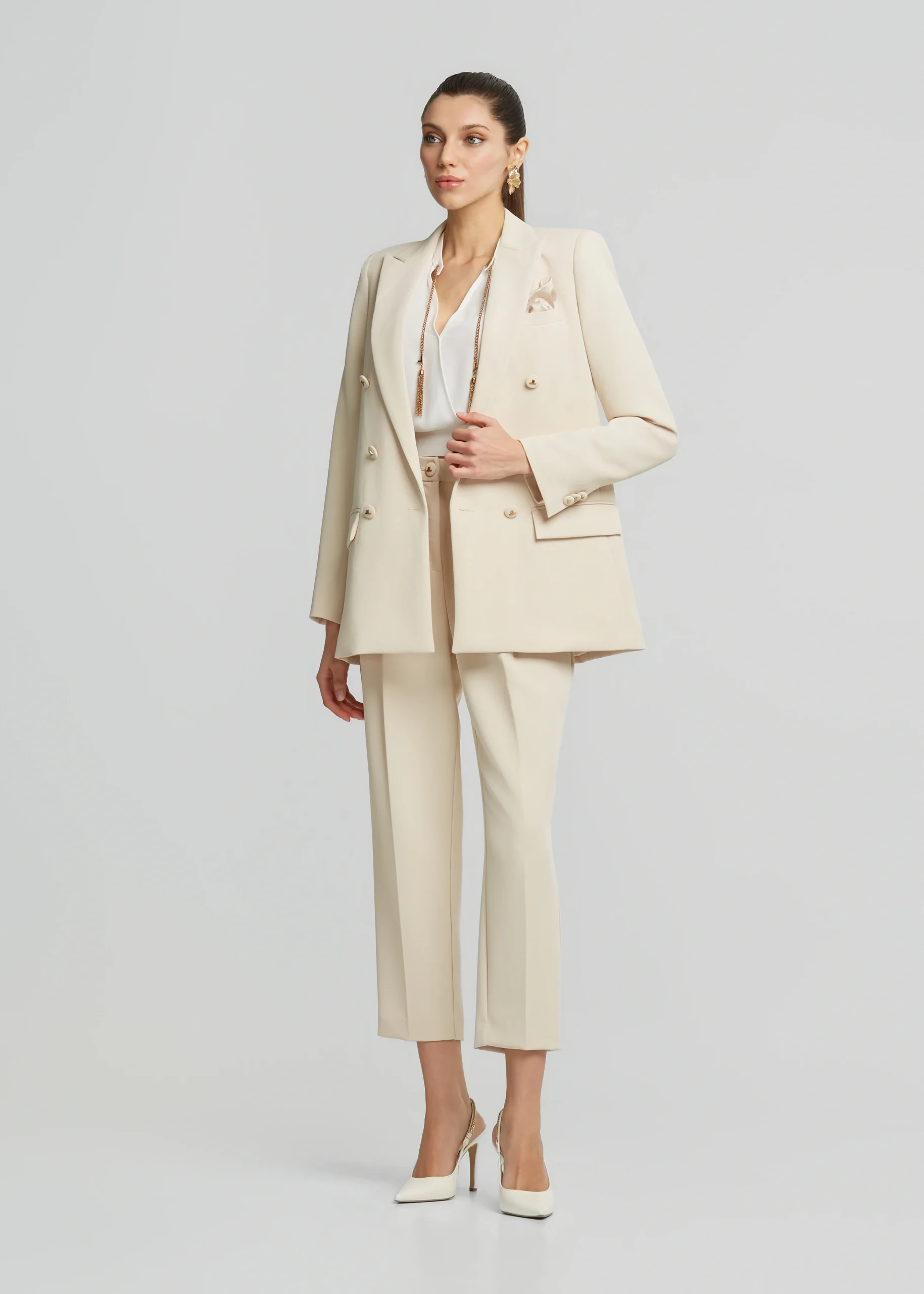 - Double-breasted crepe jacket with pochette and pockets