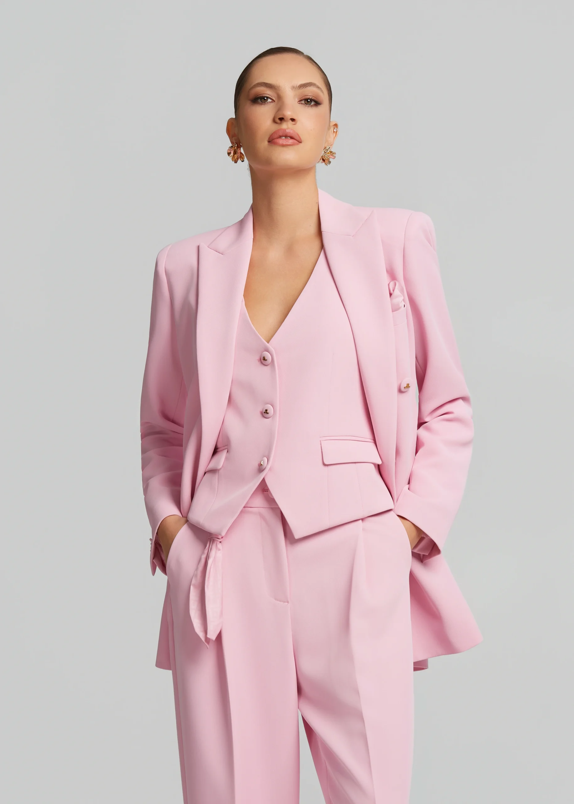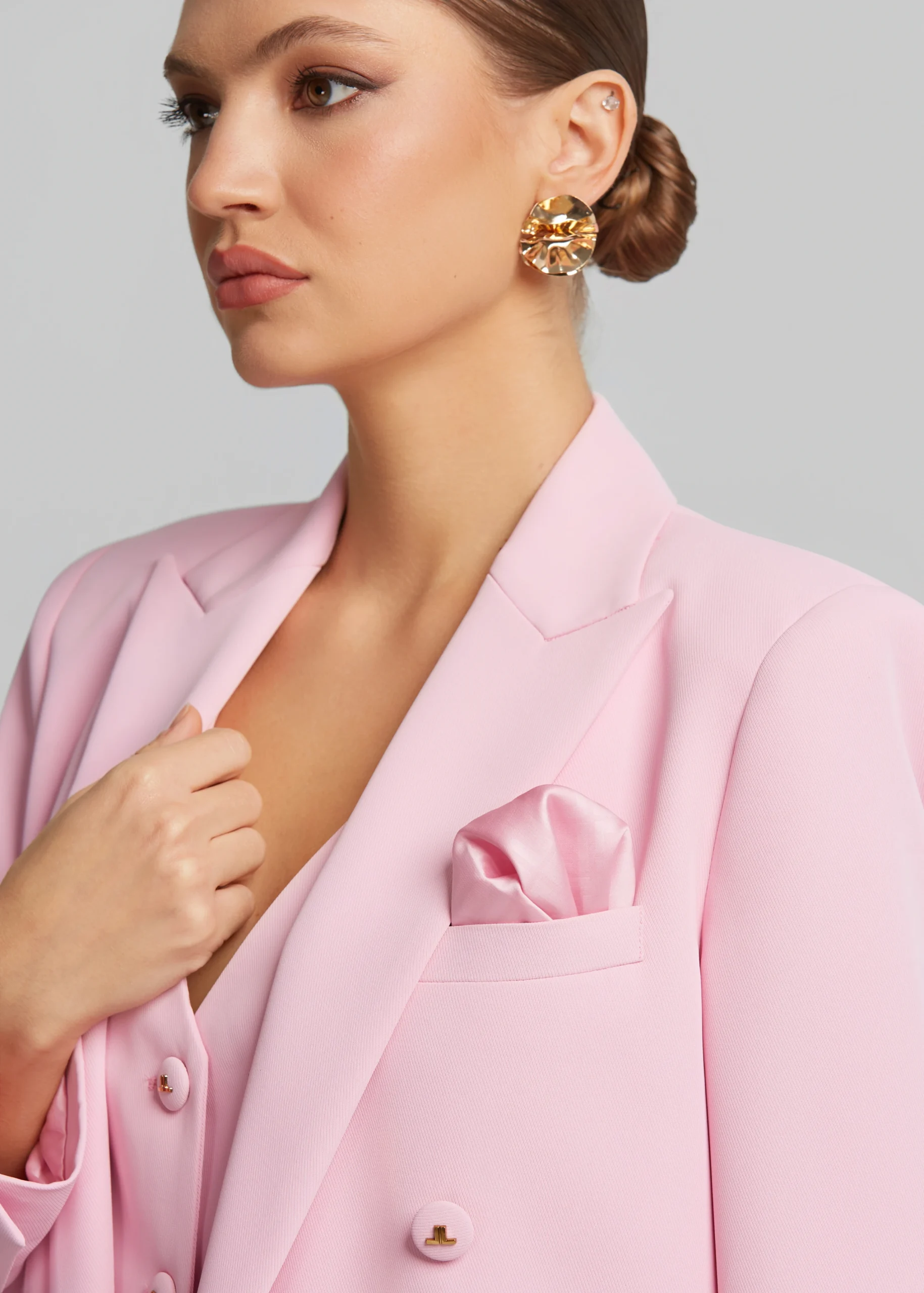 The model is wearing size 38. Model’s measurements in cm: Height 175, Chest 80, Waist 62, Hips 88