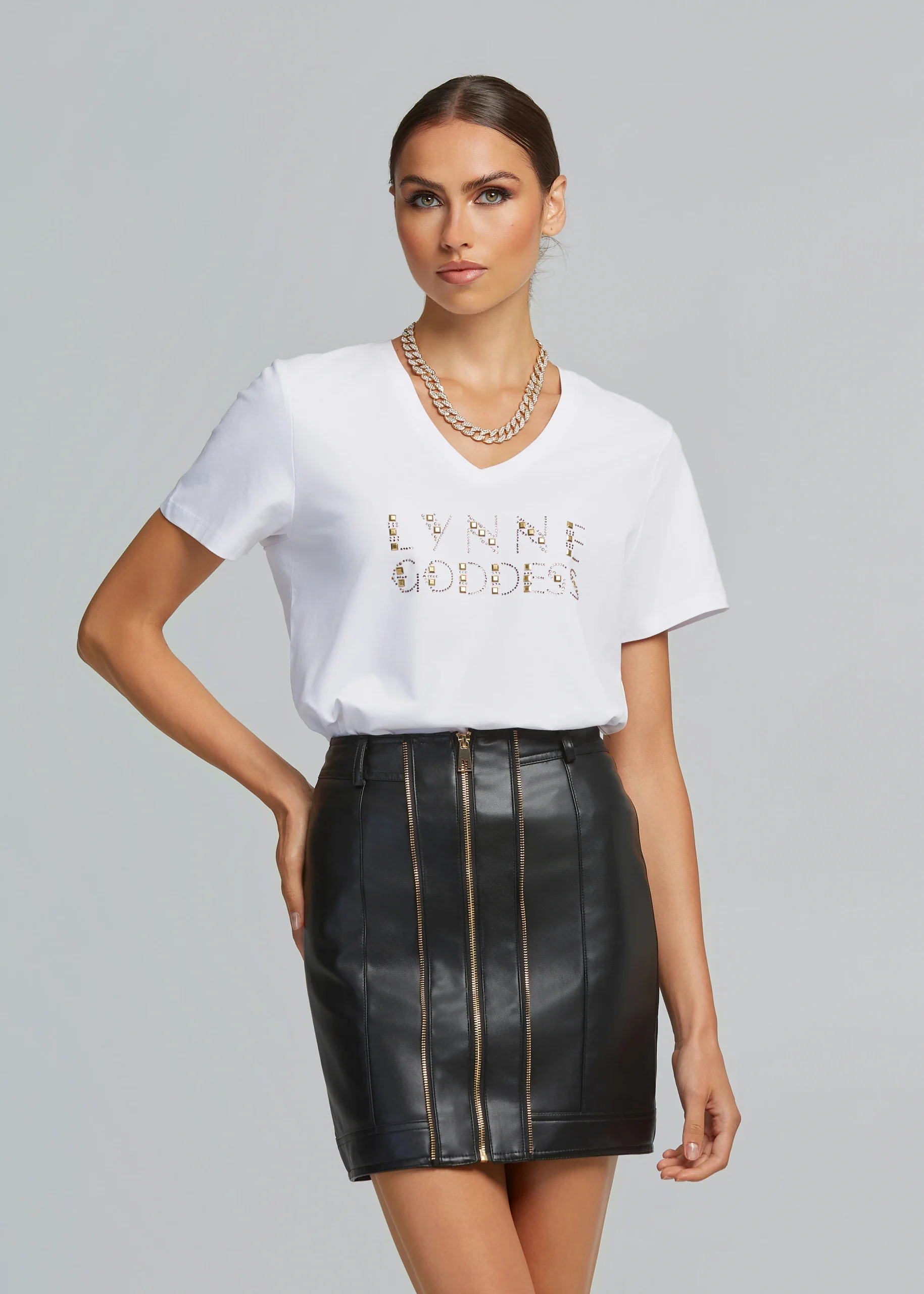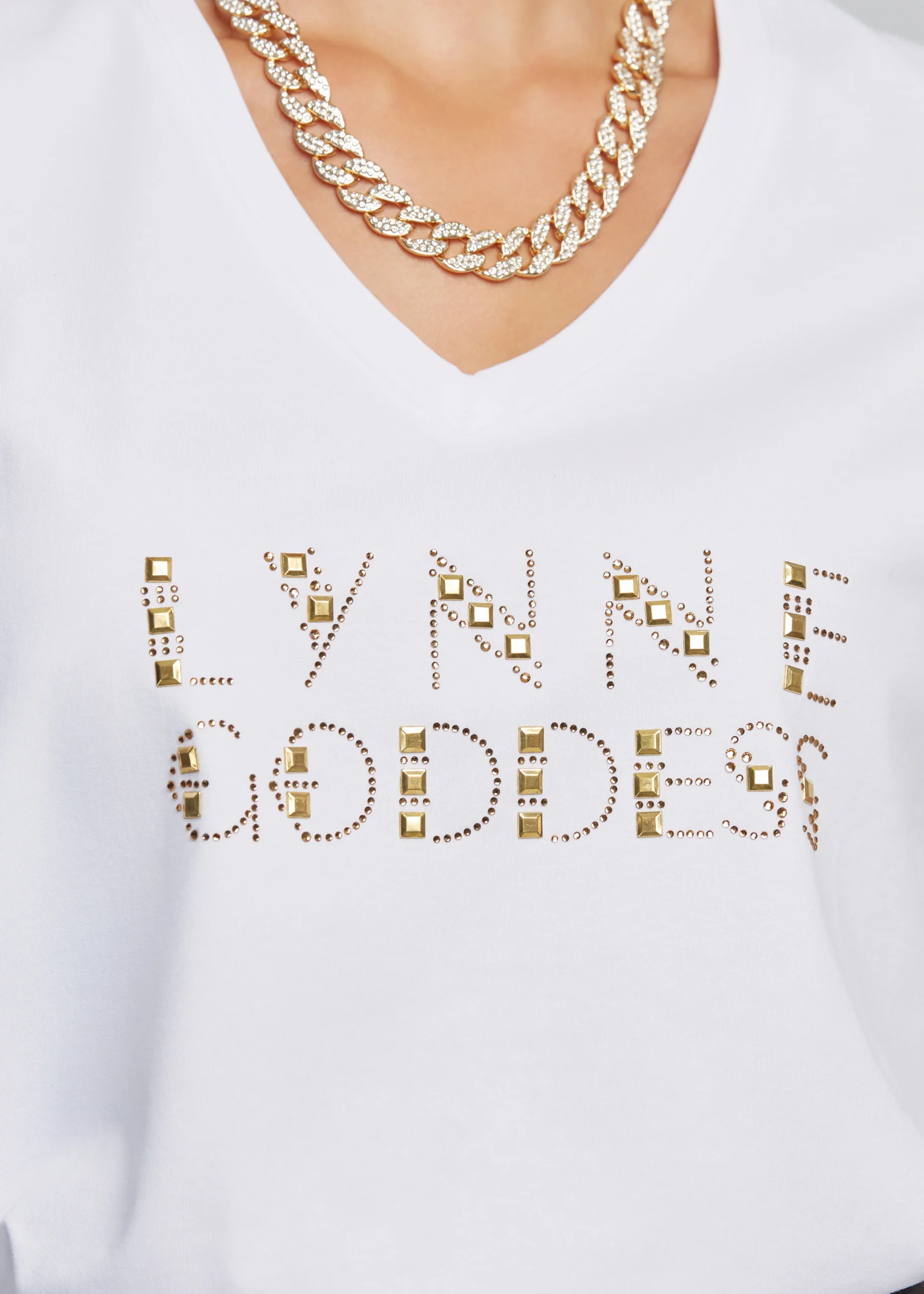 - Cotton blouse with rhinestone print and V neckline, regular fit