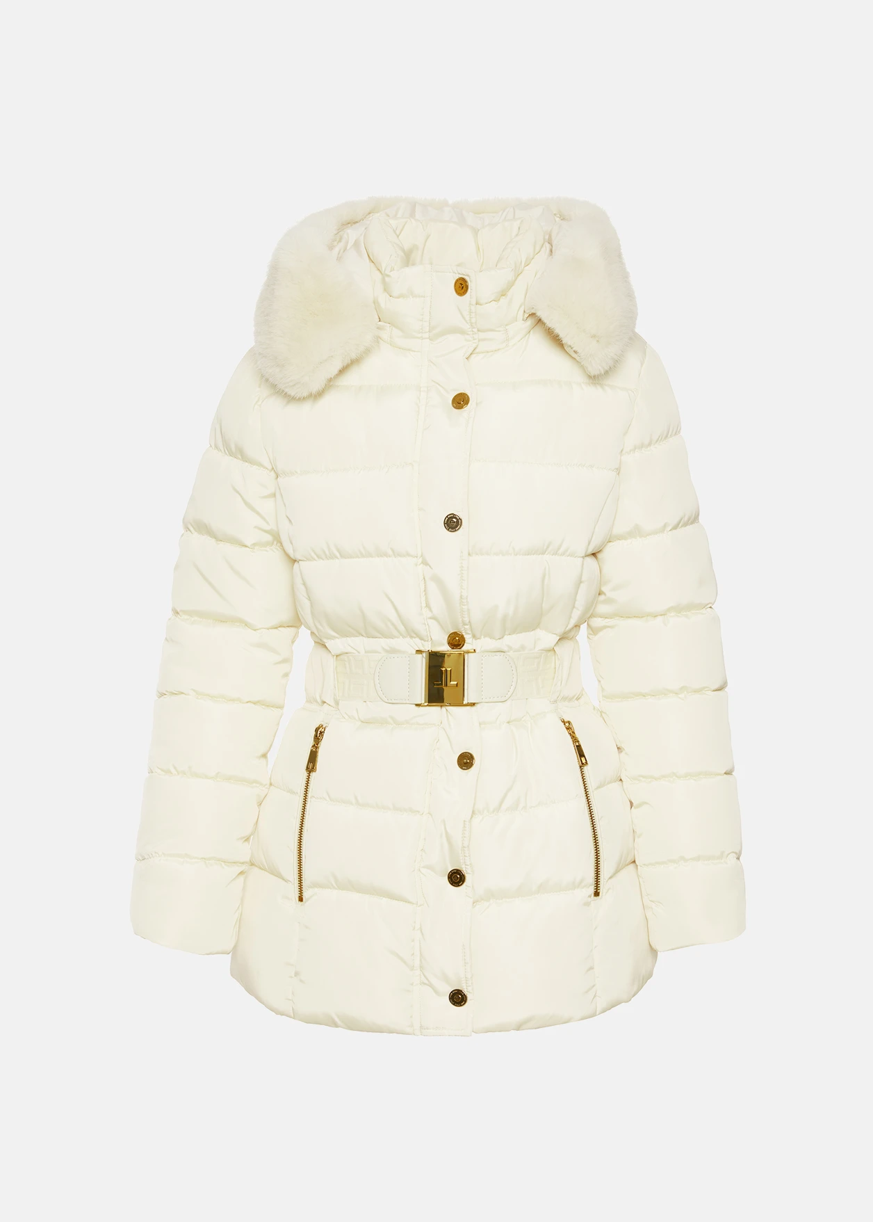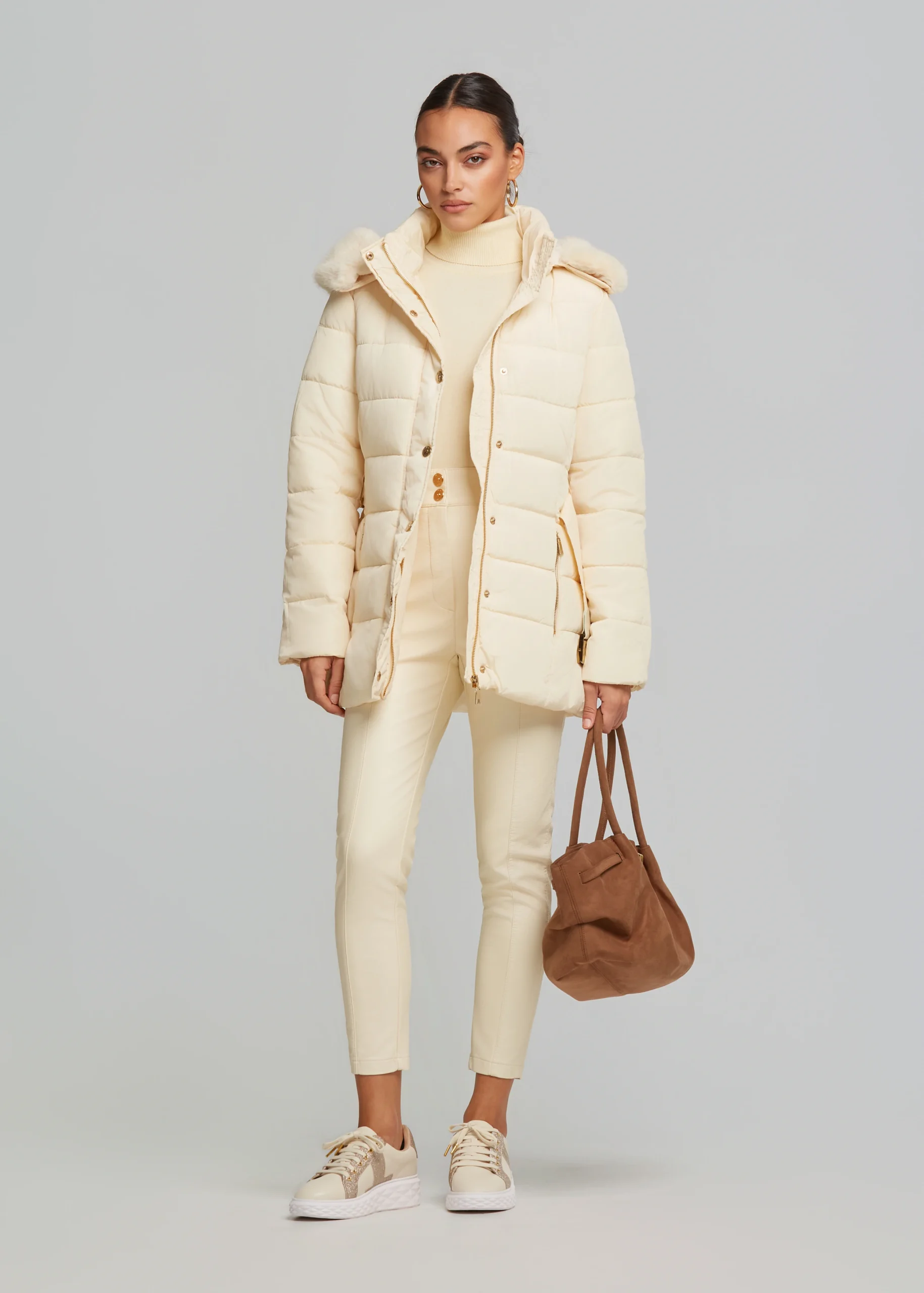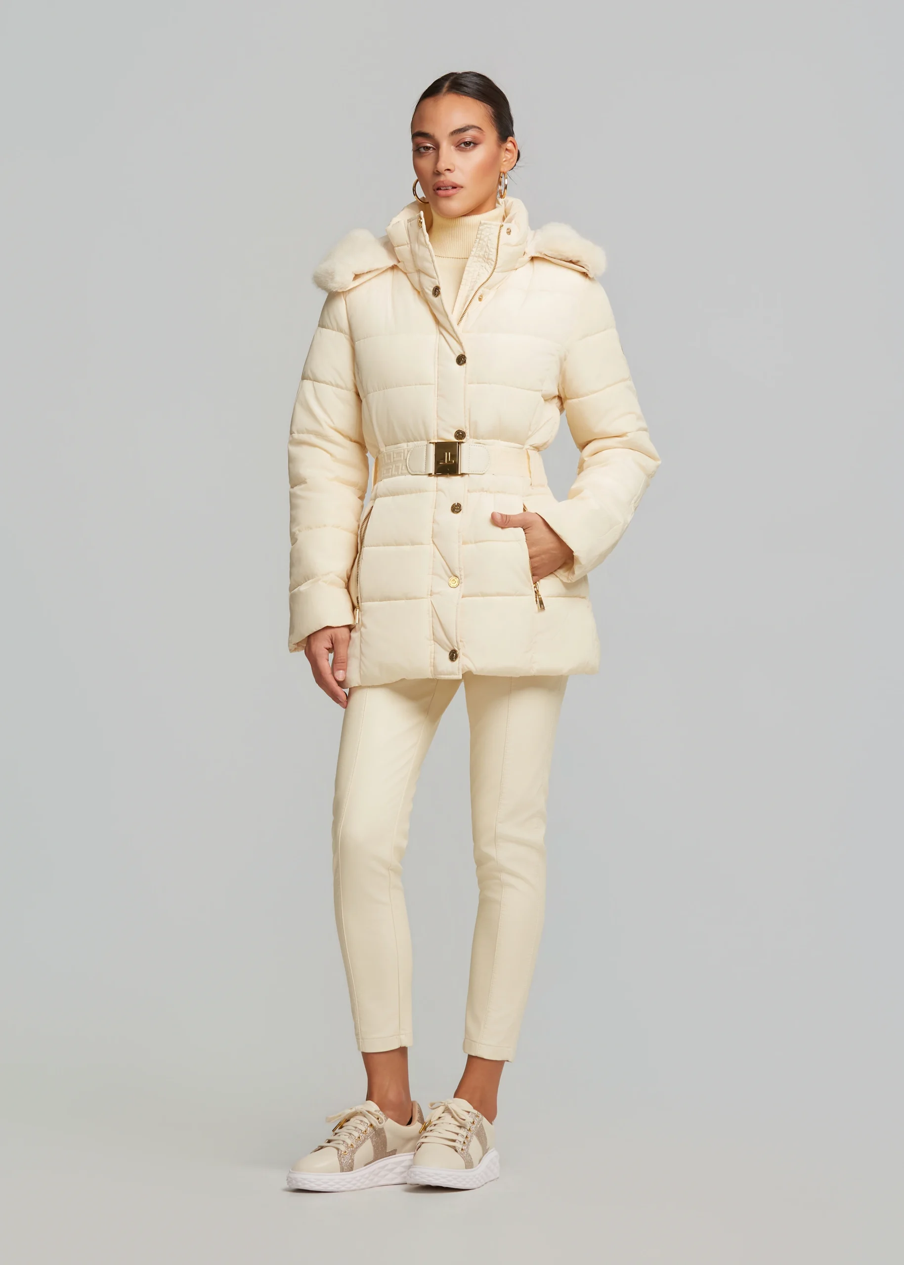 - Jacket with detachable hood and decorative faux fur
