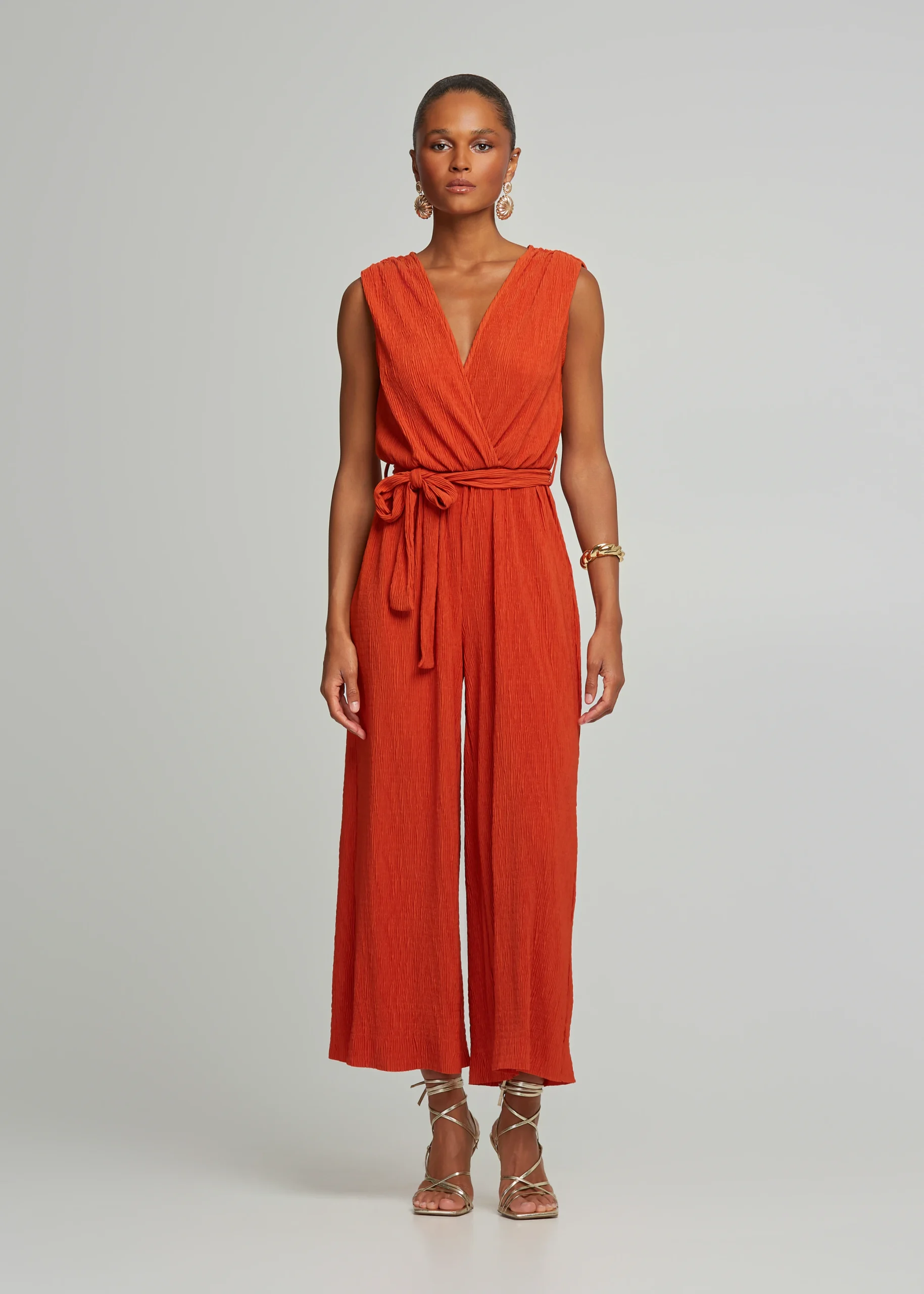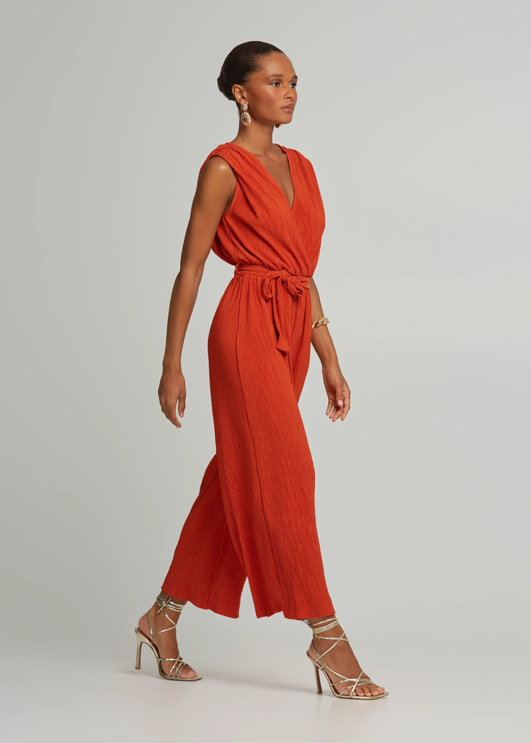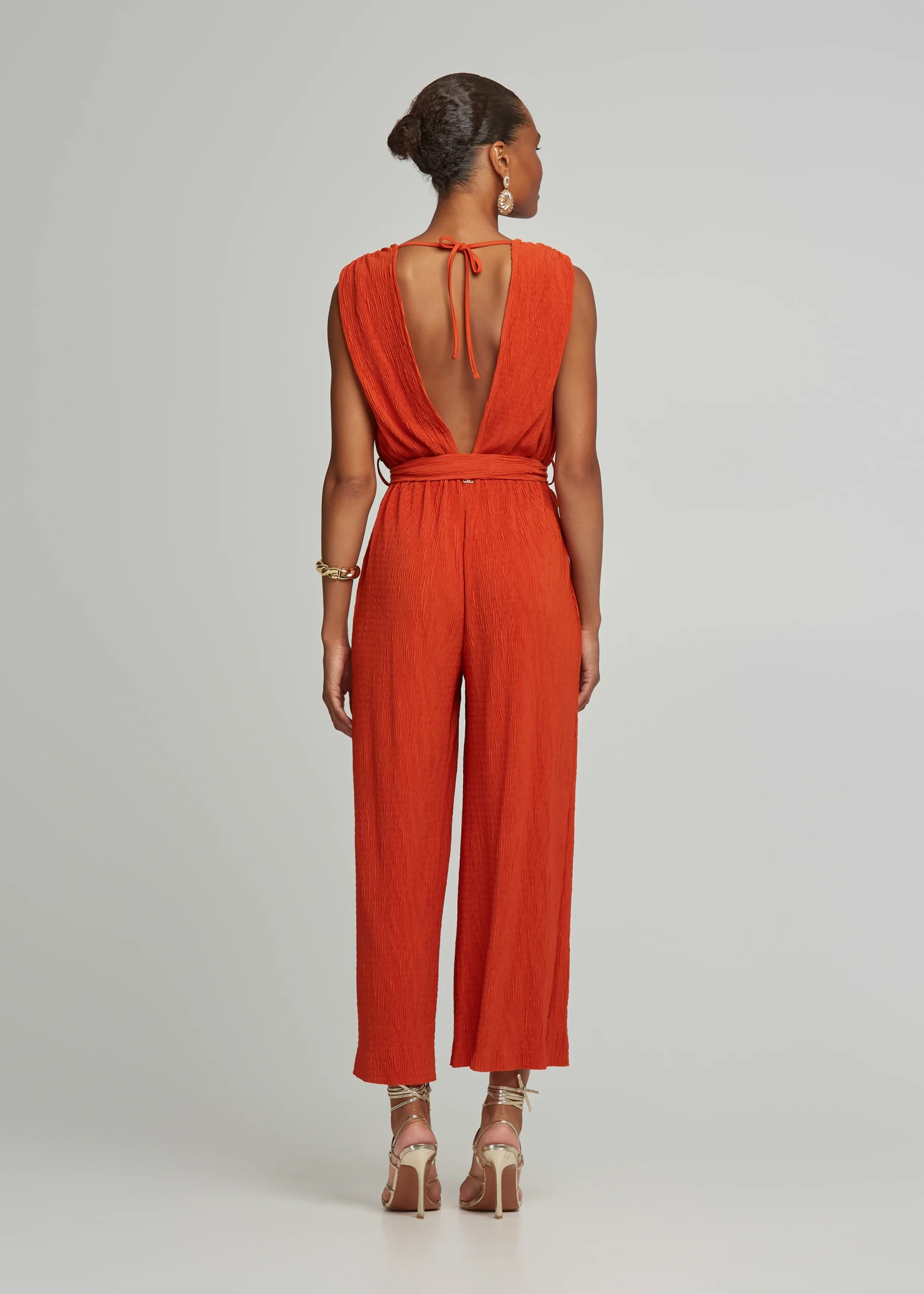 - Pleated crop jumpsuit with plunging neckline