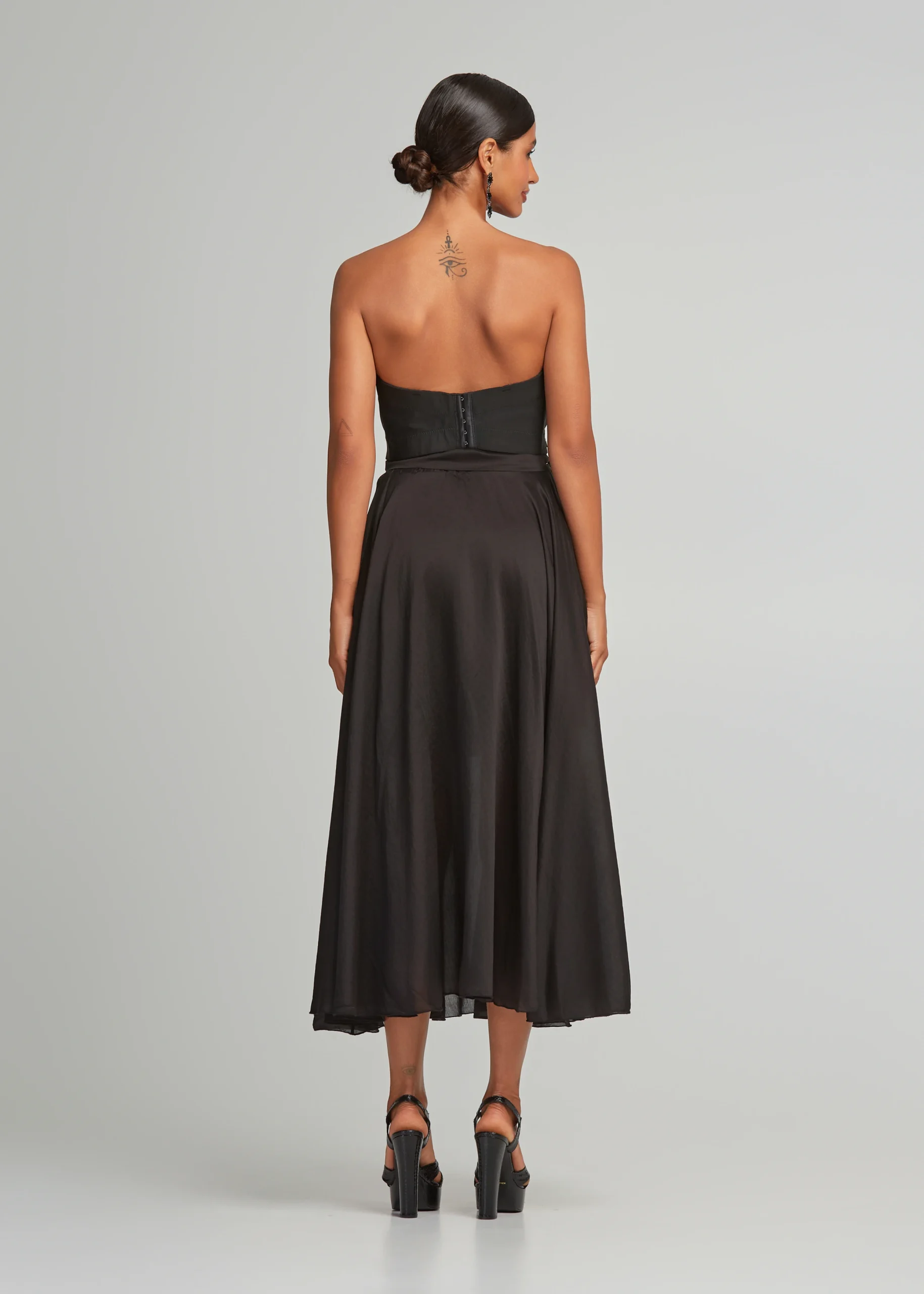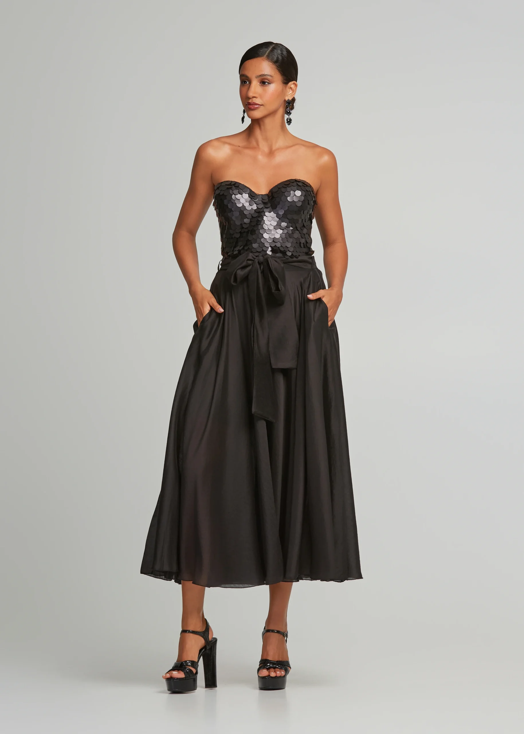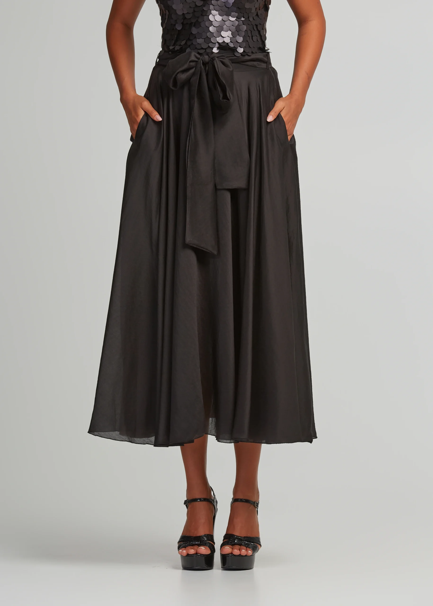 - High-waisted midi skirt with pockets and detachable belt