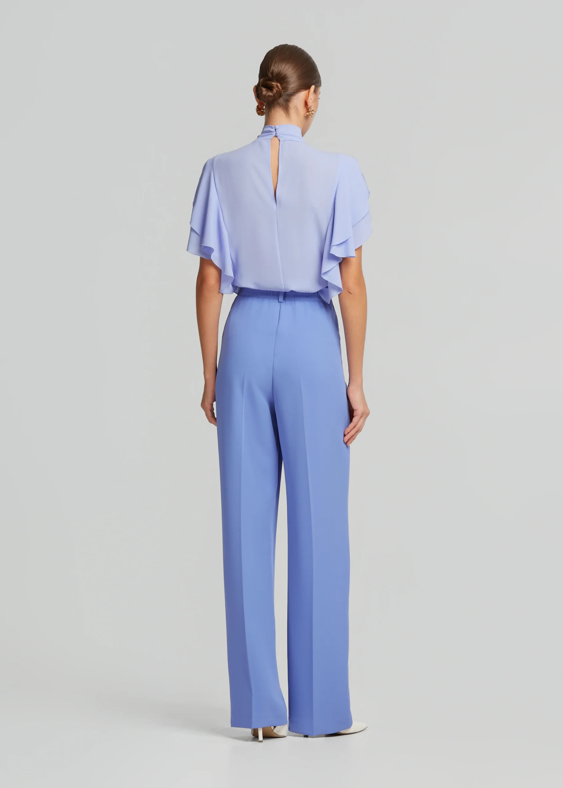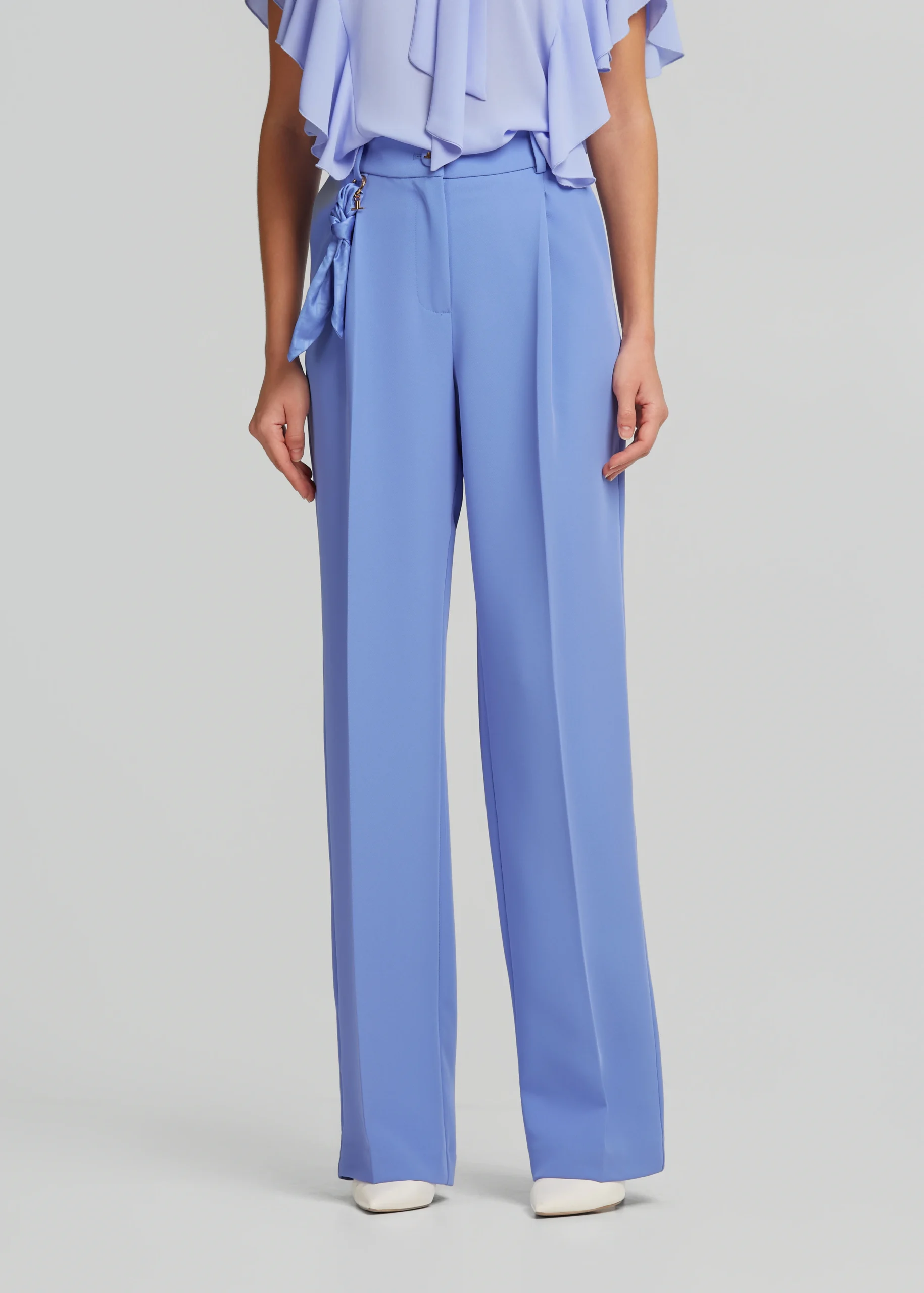 - Fabric, high-waisted straight-leg pants with detachable charm scarf