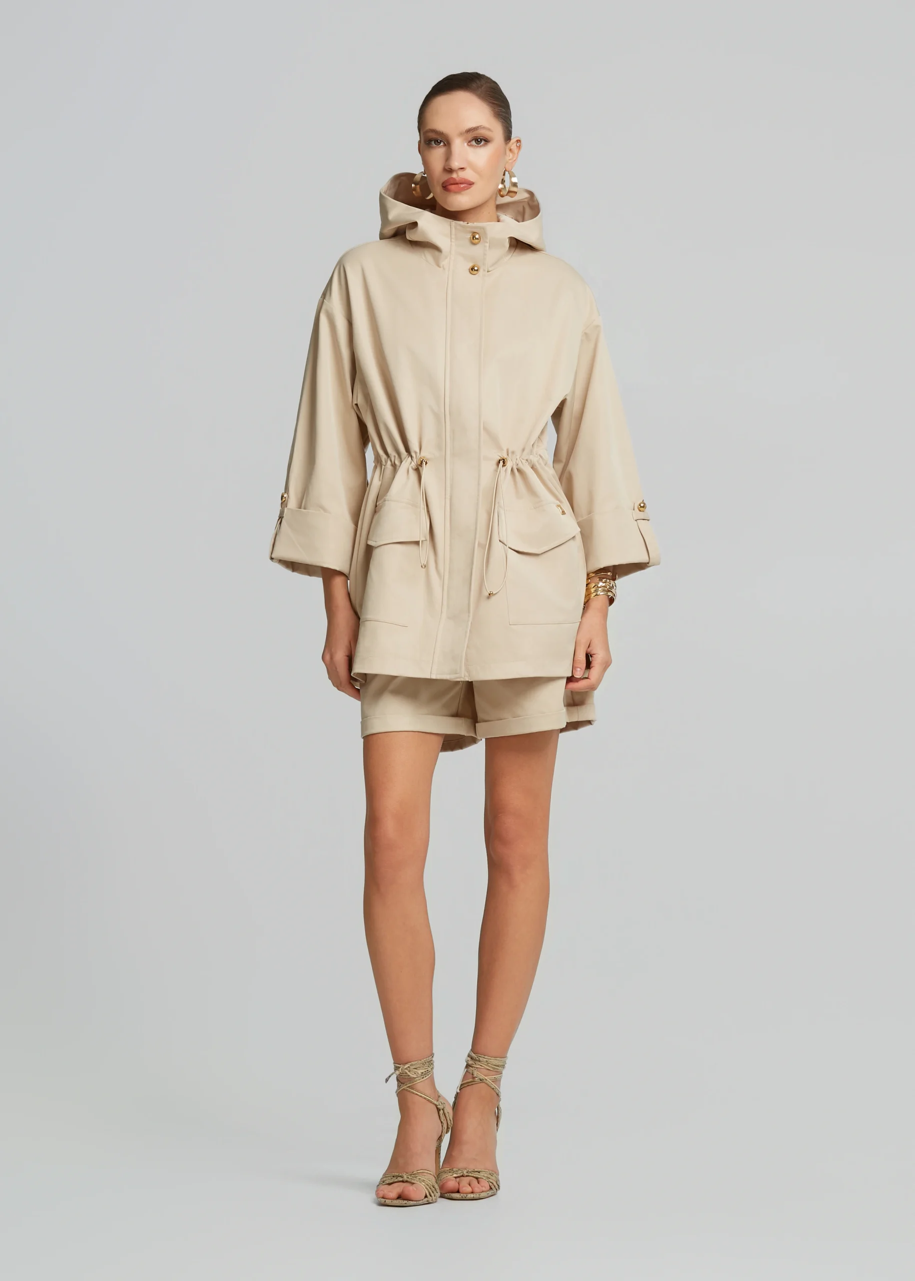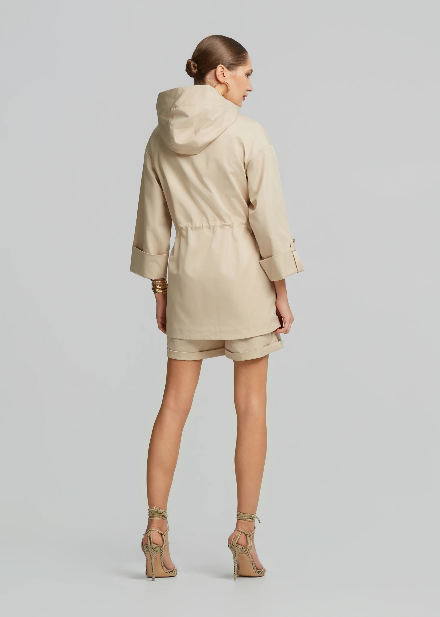 The model is wearing size 38. Model’s measurements in cm: Height 176, Chest 81, Waist 60, Hips 88