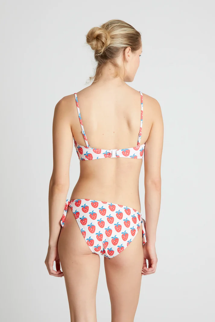 Strawberry Beach print bikini top with a straight neckline and adjustable thin straps.