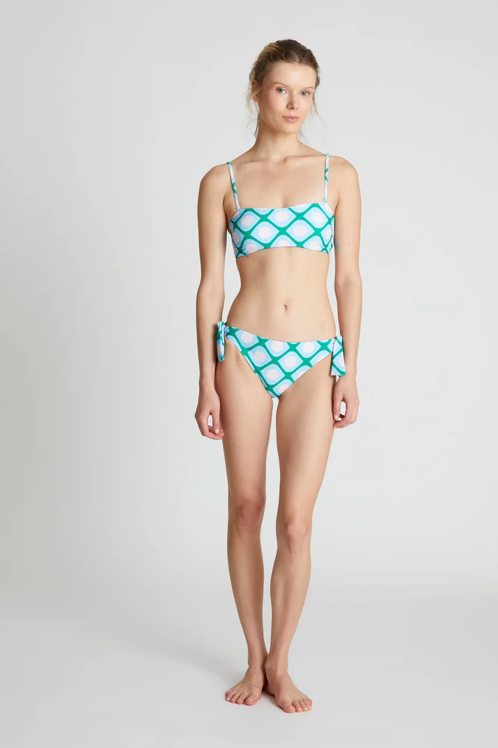 Poniente geometric print bikini top with a straight neckline and adjustable thin straps.