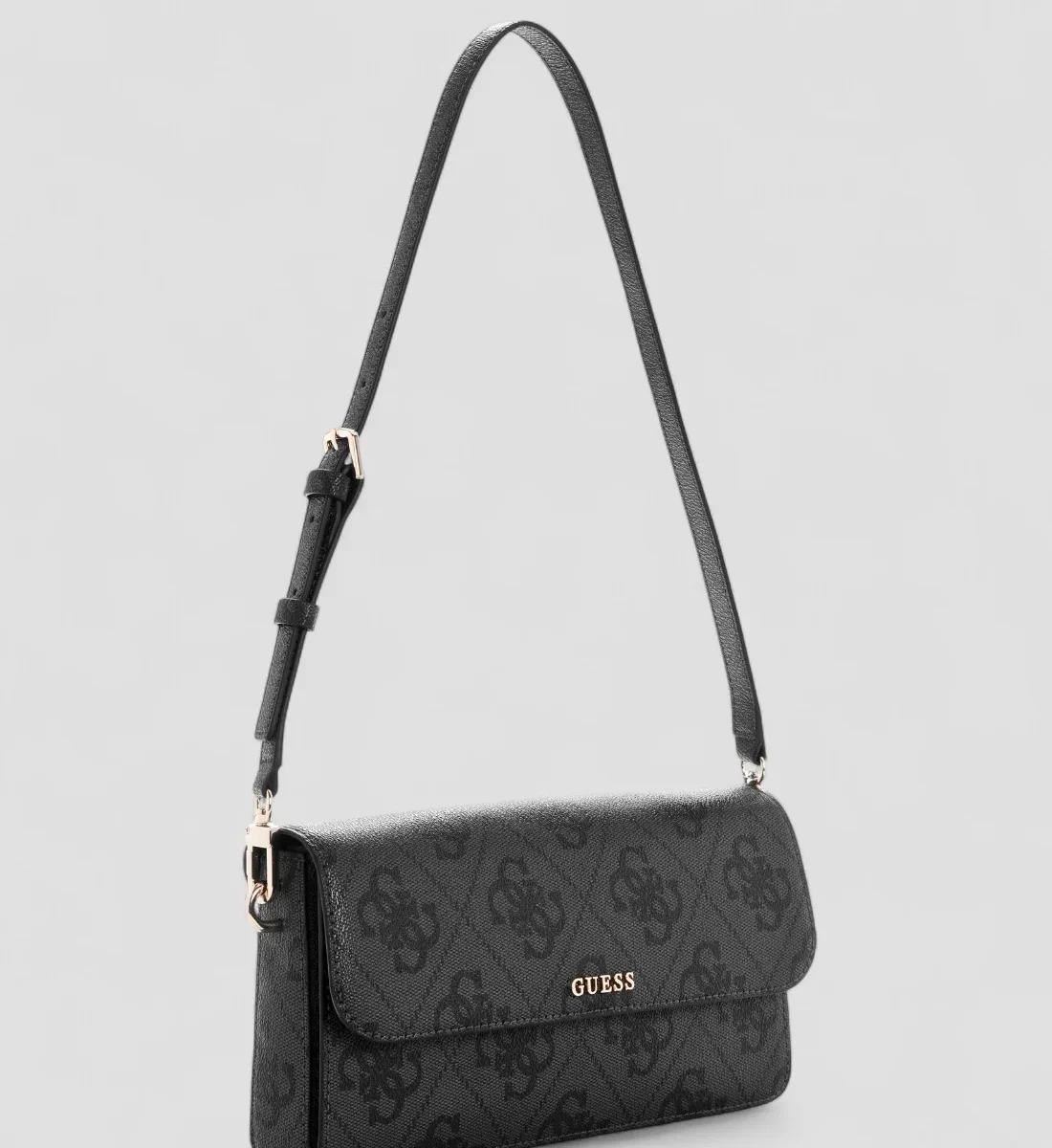 Μαύρη Γυναικεία Τσάντα ώμου Sadie με λογότυπο και καπάκι GUESS SS26