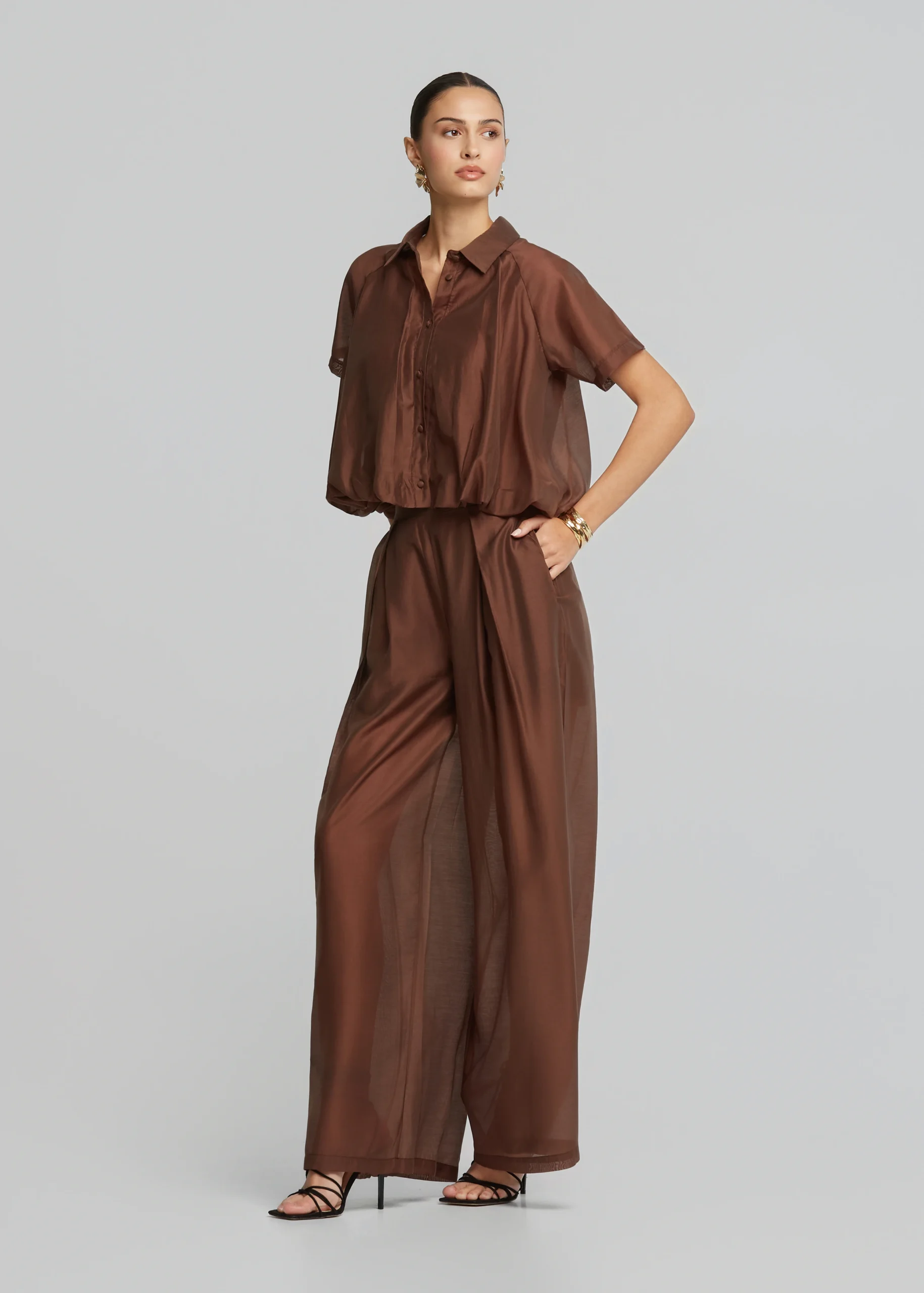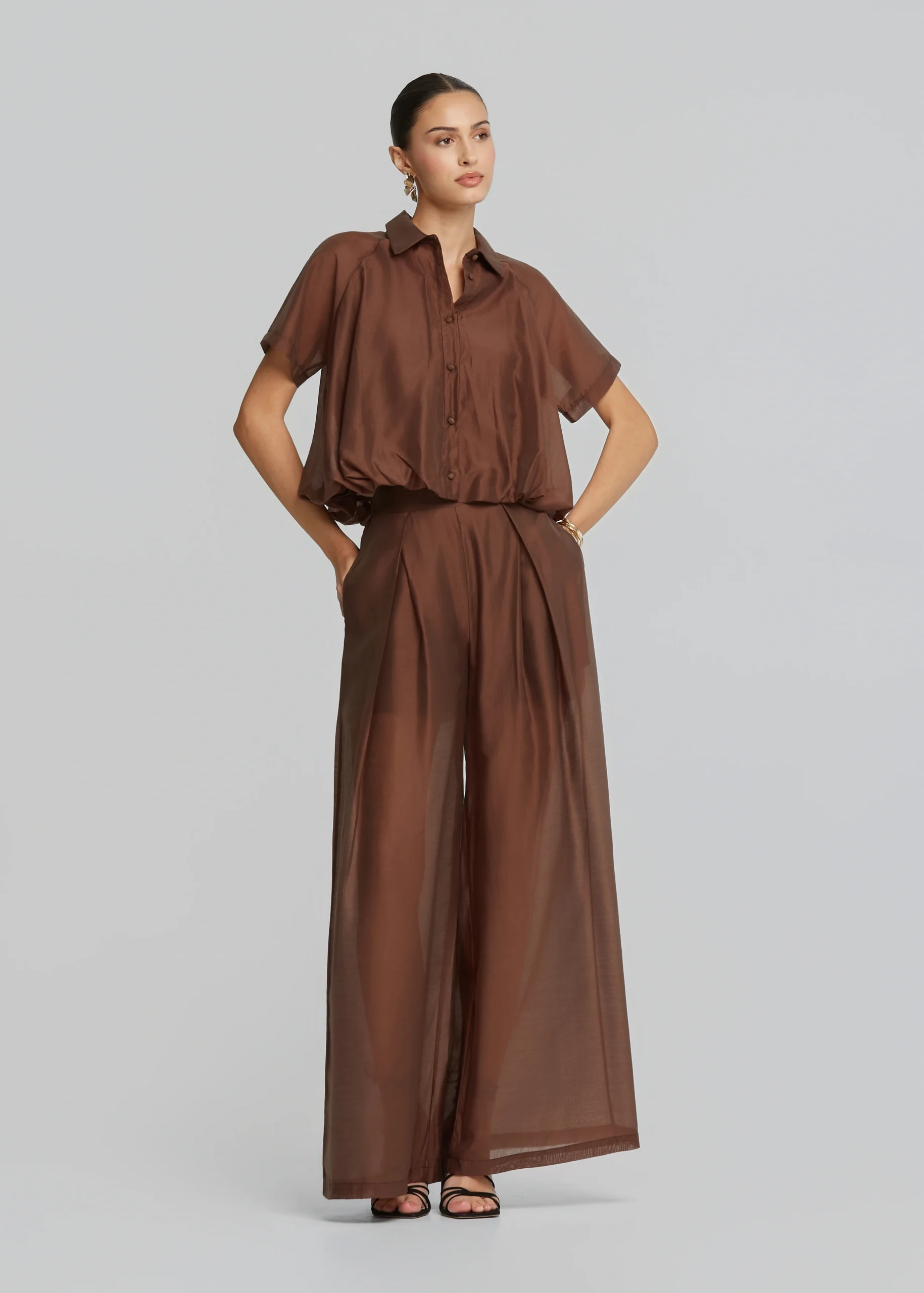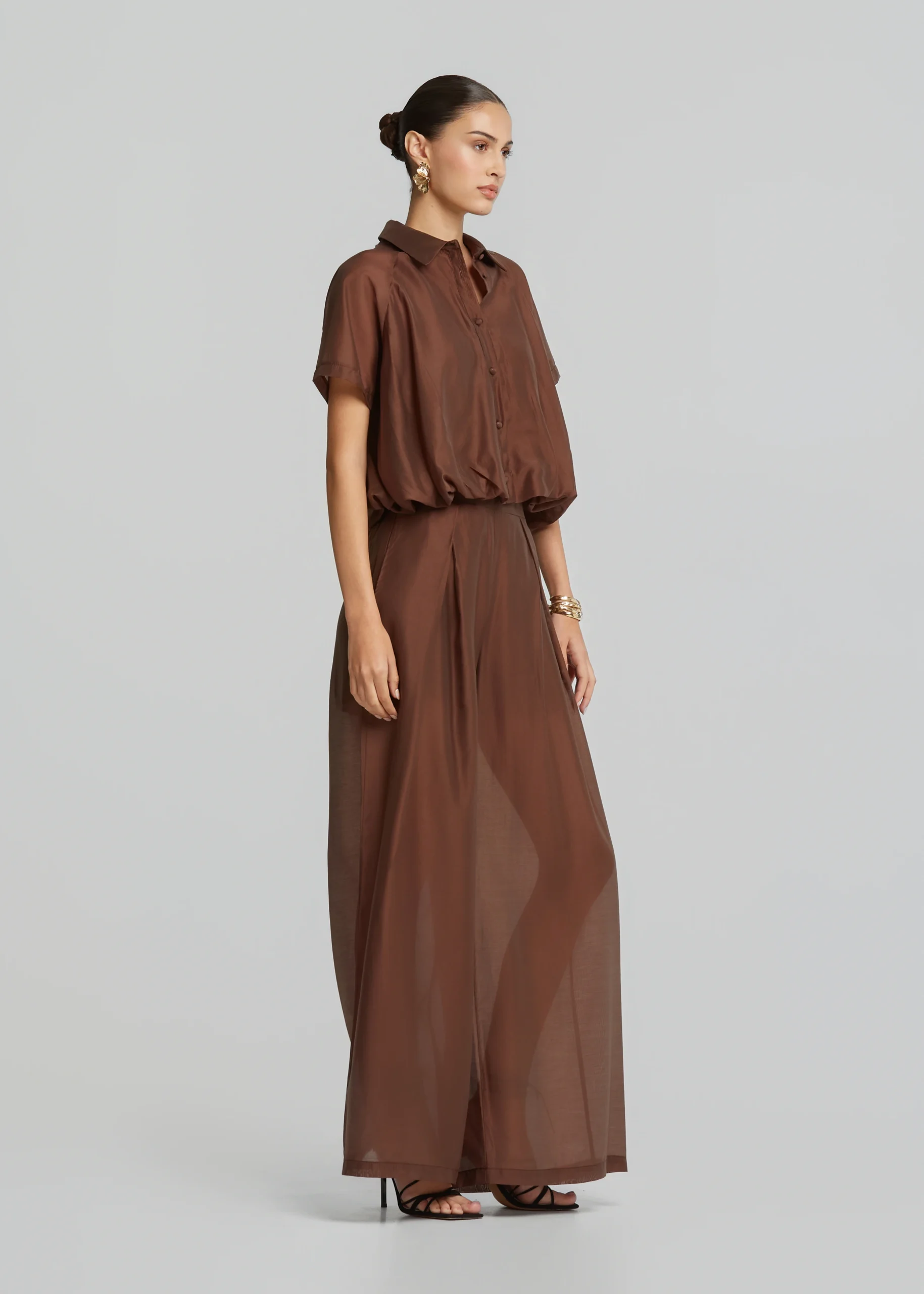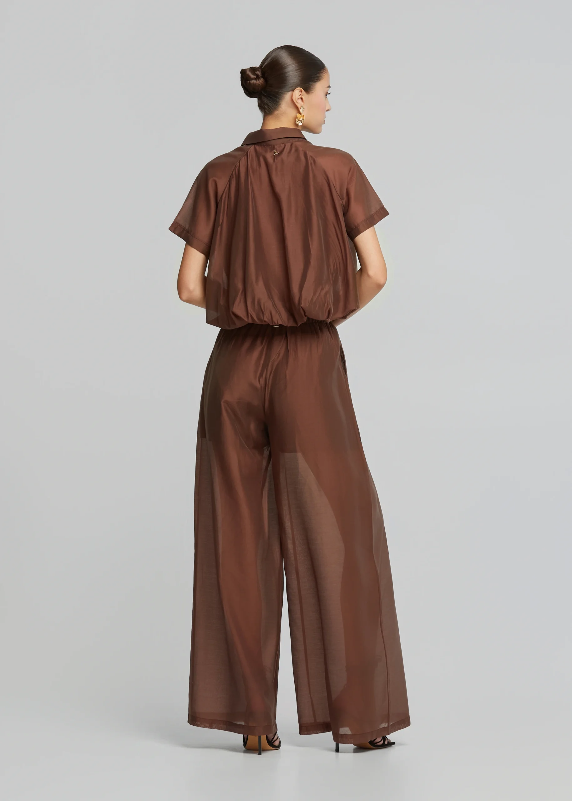 • Ψηλόμεση παντελόνα με πιέτες σε ίσια άνετη γραμμή